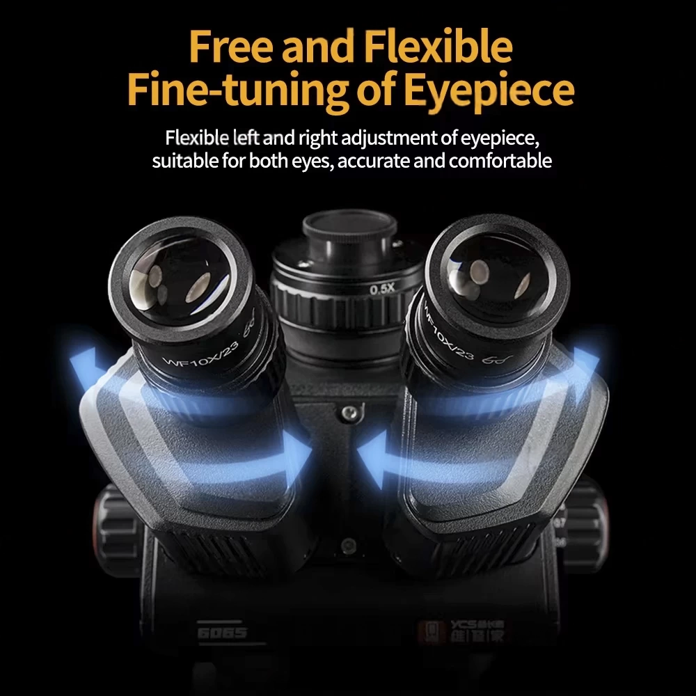 YCS 6065 Industrial Trinocular Stereo Microscope is a high-precision optical instrument designed for detailed inspection and repair work. Featuring a 0.6X to 6.5X continuous zoom range, this microscope delivers sharp and clear 3D images ideal for PCB repair, soldering, and electronics inspection