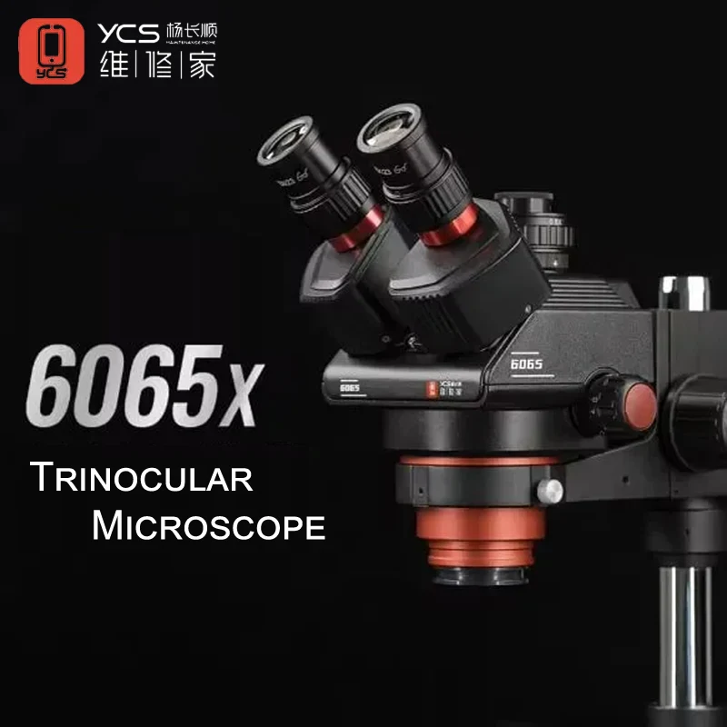 YCS 6065 Industrial Trinocular Stereo Microscope 0.6X-6.5X Zoom Microscope With Big Base For PCB Repair